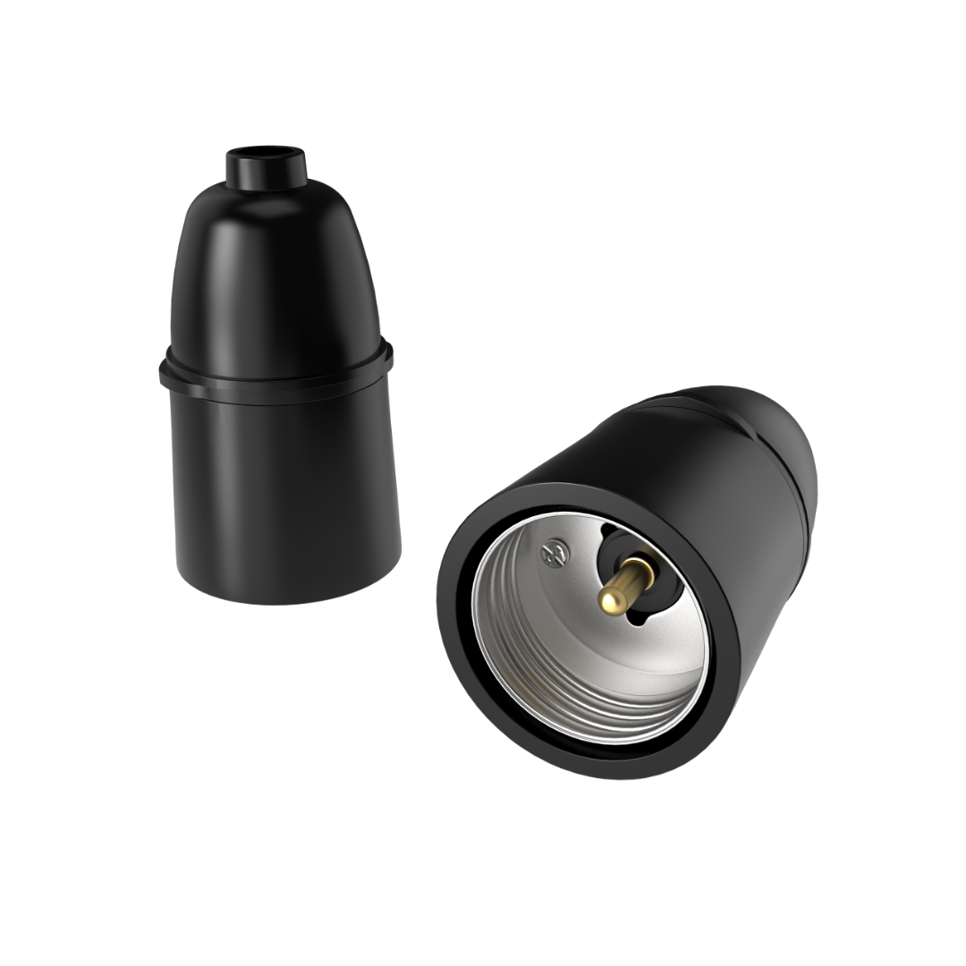 E27 Pendent holder is the most common type of Edison Screw base.It is often refereed to as just ES. The number '27refers to the diameter. This type of base is also compatible with Compact Fluorescent Globes and LED globes. High conductive brass plungers with SS springs and brass with sink plated threaded cap.