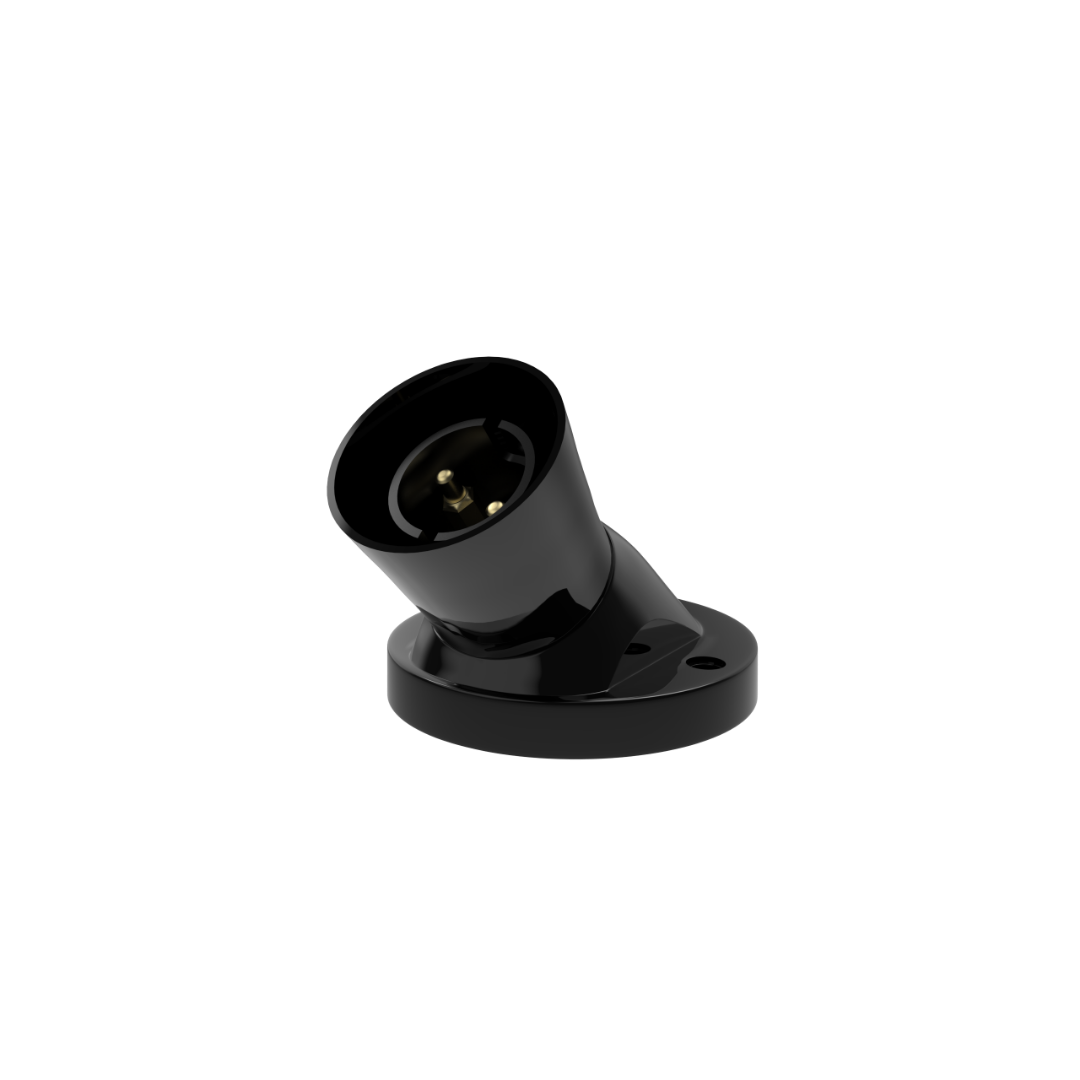 E27 Angle Batten Holder Black- this holder is a most common type of Edison Screw base.It is often refereed to as just ES. The number '27refers to the diameter. This type of base is also compatible with Compact Fluorescent Globes and LED globes. High conductive brass plungers with SS springs and brass with sink plated threaded cap.